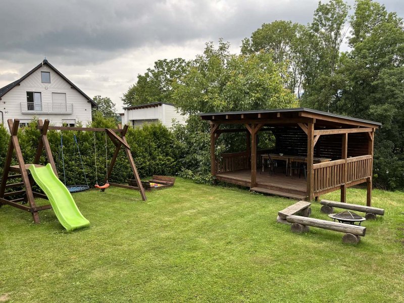 K pronájmu nabízíme zděnou dvoupatrovou chalupu se sklepením. Nachází se v Hertvíkovicích blízko golfového hřiště GRUND RESORT. Klidná lokace blízko Krkonošských hor. Ubytování pro 8 osob. V 1.podlaží se nachází předsíň, technická místnost, sociální zařízení, kuchyň, obývací pokoj s jídelní částí. V 2.podlaží se nachází 3x ložnice. Chalupa je podsklepená. Kolem chalupy je pozemek, který se dá využít ke sportovním aktivitám. Venkovní posezení pod pergolou. Posezení u grilu či táboráku. Dětské houpacky. skluzavka, pískoviště.