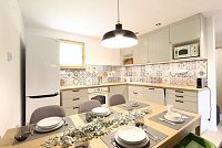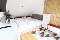 Naša chata Vás rada privíta celoročne, s celkovou kapacitou 14 osôb a dvomi detskými postieľkami. Aktívnu dovolenku u nás strávia rodiny s deťmi alebo väčšie skupiny priateľov, taktiež nadšenci turizmu a cyklistiky. Spoločné chvíle oddychu môžete stráviť v priestrannej obývačke, kde Vás zabavia spoločenské hry alebo televízor so satelitným prijímom a Netflixom. Oddýchnete si tu aj na pohodlnom gauči popri počúvaní rádia či CD prehrávača. Naši detskí návštevníci ocenia detský kútik vybavený peknými hračkami a knižkami.