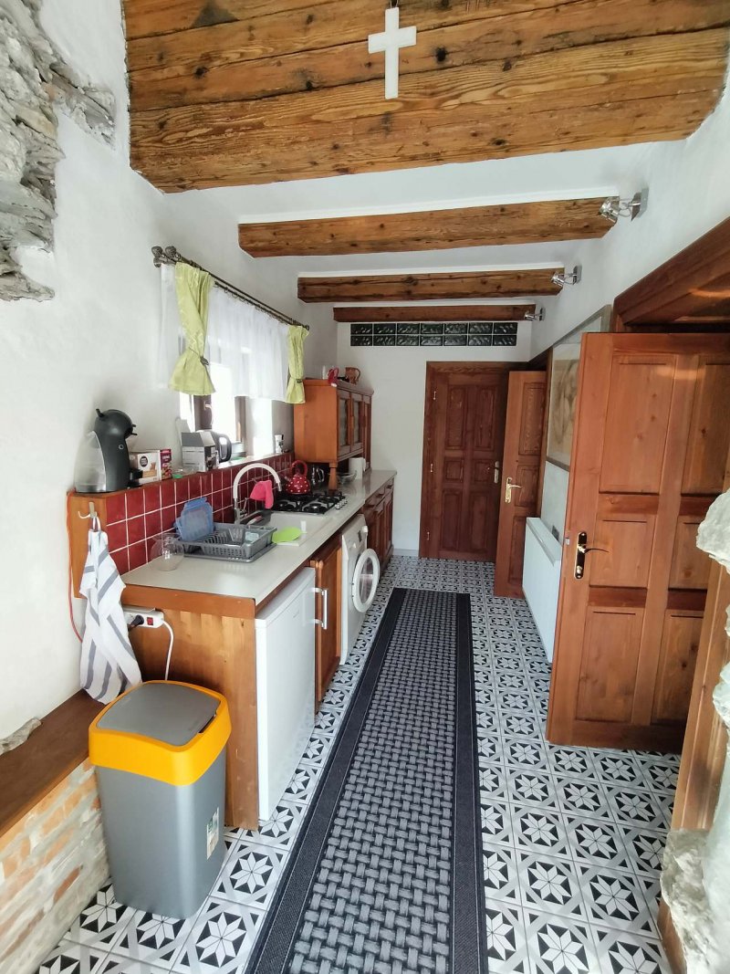 Štýlovo zariadených 85m² apartmánu s 2 kúpeľňami, 2 toaletami, kompletne vybavenou kuchyňou, vonkajším sedením a ohniskom. 3 miestnosti, štandardne 6 lôžok (2 manželské postele, 2 samostatné lôžka), možnosť 2 prístelky pre deti.