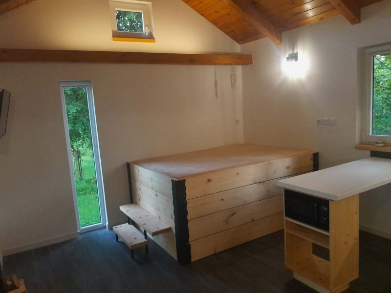 Chata Domeček se nachází na polosamotě na neoploceném pozemku sousedícím s majitelem. Ubytování je vedeno ve stylu glamping či Tiny House ( minimalistický domek, který nabízí milovníkům přírody pobyt v přírodě s komfortem). Nikdo Vás zde nebude rušit. Kolem jsou lesy, louky a nádherné okolí s výhledy. Pokud chcete zažít naprostý relax a detox, tak nás neváhejte kontaktovat. Máte zde možnost utéct z civilizace a užívat si přírodu, zpěv ptáků a klid.