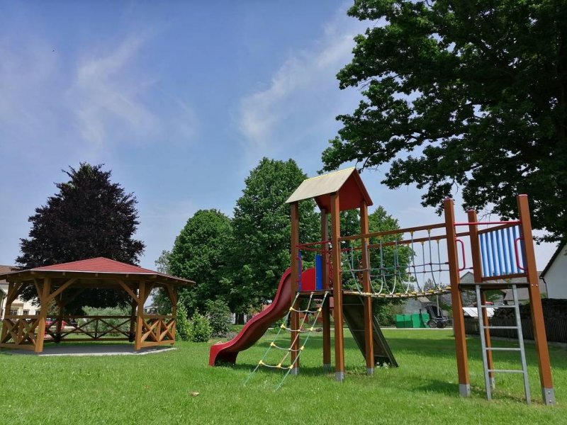 Z posezení pod pergolou s grilem se nabízí pohled typický pro jihočeskou vesnici - rybníček s vrbami sklánějící se nad vodou a staleté vzrostlé duby. Po západu slunce se chodí srnky pást na přilehlou louku. Otevřené ohniště je samozřejmostí.