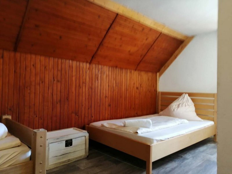 Čerstvě opravený domek na kraji vesnice Člunek nabízí ubytování pro max. 12 lidí. Nenajdete zde luxus, ale prakticky zařízený domek s velkými prostory. Nemusíte se bát že vaše děti něco rozbijí a pes naťape na podlaze. Naopak, děti si vyhrají na zahradě na pískovišti, obsáhlý je i vozový park , kuchyňka pro malé kuchařky. Kdo má rád zvířátka tak na zahradě bydlí v ohrádce morčata.