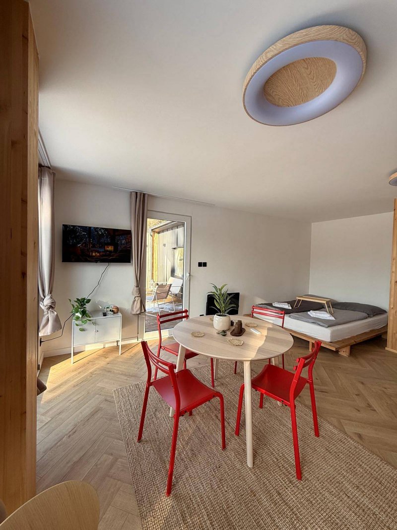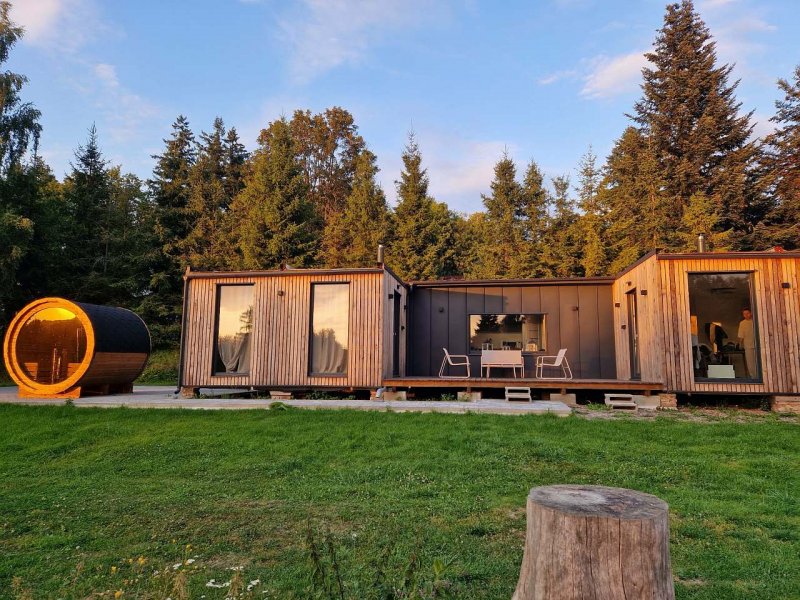 Domek Panorama v Moravském Berouně je místem, kde hlavní roli hraje prostor a světlo. Díky velkým proskleným plochám si užijete výhled nejen z pohodlí postele, ale i během relaxu v panoramatické sauně, která se nachází hned vedle domku. Světlo, prostor a design dávají tomuto domku jeho jedinečný charakter. Panorama nabízí vyšší standard ubytování a promyšlené vybavení pro maximální komfort. Najdete zde plně vybavenou kuchyň, koupelnu s ručníky, kávovar s kapslemi, minibar, Wi - Fi připojení a televizi s Oneplay. Příjemnou atmosféru dotvářejí krbová kamna se dřevem, samozřejmostí jsou také základní hygienické potřeby. Součástí zážitku je i prosklená sudová sauna umístěná přímo vedle domku, která zve k odpočinku s výhledem. Domek Panorama se skládá ze dvou samostatných apartmánů. Každý apartmán je vybaven manželskou postelí a rozkládací pohovkou o rozměru 140×200cm s plnohodnotnou matrací vhodnou pro každodenní spaní.