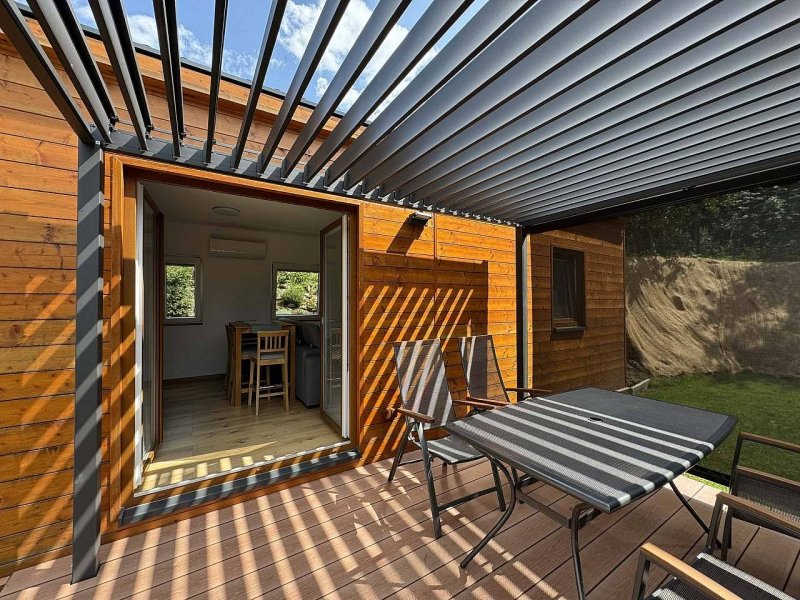 Zcela nové celoroční Domky Slapy jsou umístěny v klidné části obce Slapy Přestavlky - 1,7km od jezera Slapy. Každý je plně zařízený pro 4+1 osoby. Domky lze pronajmout dohromady i samostatně - hosté každého domku mají své soukromí. Jsou oddělené plotem se stínící textilií. Společné je parkování a úschovna sportovního vybavení. Oba domky mají vlastní venkovní terasu s monoklimatickou pergolou a bočními slunečními zástěnami.