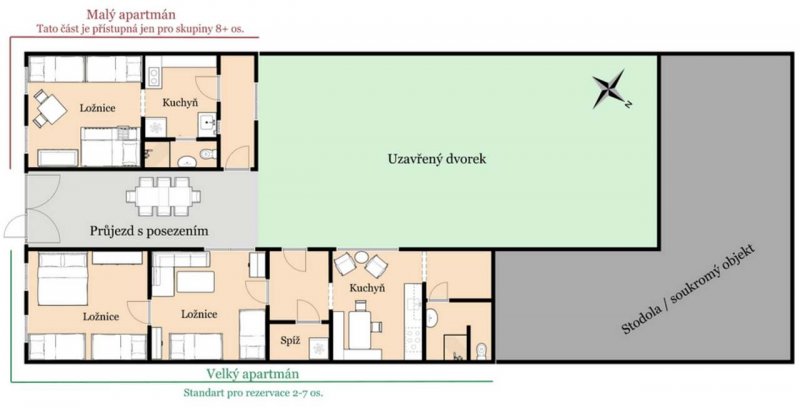 Dráchovský dvorek se nachází v klidné části obce Dráchov, nedaleko slepého ramene řeky Lužnice, v atraktivní lokalitě mezi Soběslaví a Veselím nad Lužnicí. Objekt tvoří dvě samostatné ubytovací jednotky – velký apartmán a malý apartmán (výměnek). Chalupa má typický venkovský ráz s uzavřeným dvorem a krytým posezením v průjezdu. Vhodné pro rodiny, rybáře i cyklisty. V okolí je řada rybníků, lesů, cyklostezek a možností koupání i vodních sportů. Ideální pro pohodovou dovolenou v srdci jižních Čech.