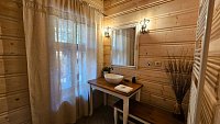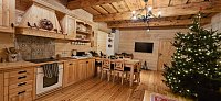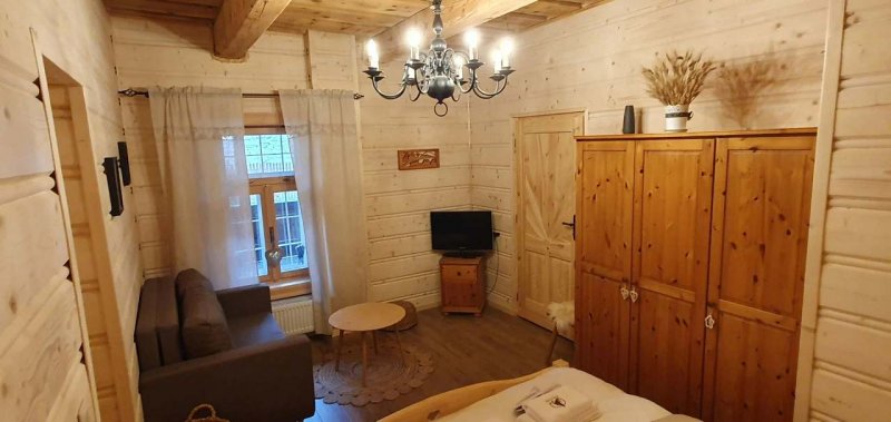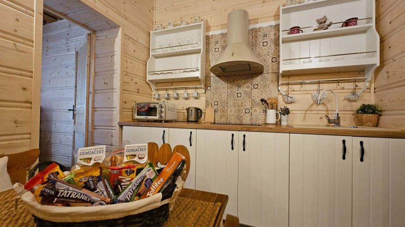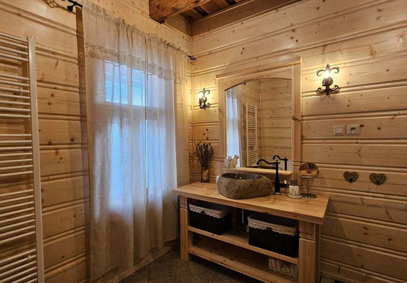 V prekrásnom prostredí pod Chočskými vrchmi, v pár krokov od obľúbenej Kvačianskej a Prosieckej doliny sa nachádza dedinka Veľké Borové a v nej naša 100 ročná, ale ako nová Drevenička Borovianka. S láskou zrekonštruovaný interiér je prispôsobený pre 11 osôb. Očarí Vás jej tradičný kolorit pripomínajúci časy dávno minulé. Vojdite dnu a užite si jedinečnú atmosféru tohto miesta. Nájdete v nej prvky, ako sú priznané drevené trámy či efektné vitrážové okná. Drevenicu Borovianka nájdete uprostred malebnej prírody, kde vám dovolenku budú spríjemňovať vyzváňajúce ovečky. Pri varení Vám budú nápomocné vstavané a voľne stojace elektrospotrebiče. Srdcom drevenice je priestorovo veľkorysá kuchyňa spojená s oddychovou zónou so smart televízorom (Netflix, Skylink). Pohodu pri šálke kávy si môžete dopriať za jedálenským stolom, v kresle alebo na veľkej rohovej sedačke. Využiť môžete aj druhú, taktiež plne vybavenú kuchynku. A aby sa Vám u nás príjemne spalo, je pre Vás pripraveno päť 2 - lôžkových spální. Priamo z terasy a taktiež aj z okien izieb, sa Vám naskytnú úchvatné výhľady. V našej kamennej pivničke sa môžete počas letných horúčav príjemne schladiť a vychutnať si načapované pivko. Ďalším zaujímavým prvkom je originálny hlinený krb a posedenie, kde si môžete pripraviť grilované špecialitky. Detské kráľovstvo u nás tvorí drevený domček so šmýkačkou, mini lezeckou stenou a hojdačkou. Rodičia zase môžu odpočívať na pohodlnej hojdačke priamo pod terasou – tu sa nachádza aj útulné posedenie pre prípad, že by Vám nevyšlo počasie. Miesto na parkovanie nájdete priamo pred vchodom do Dreveničky.