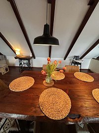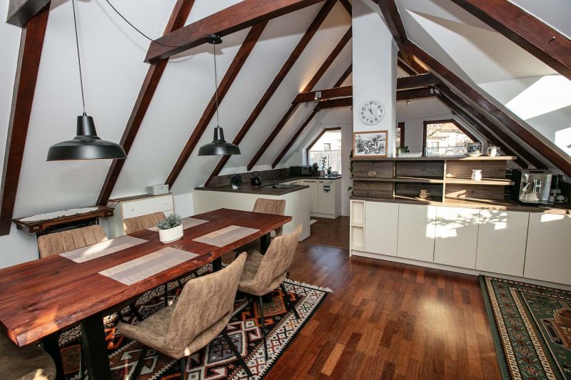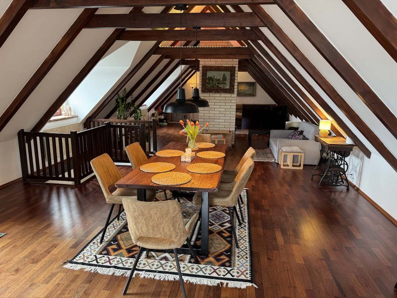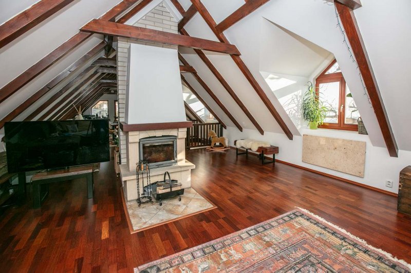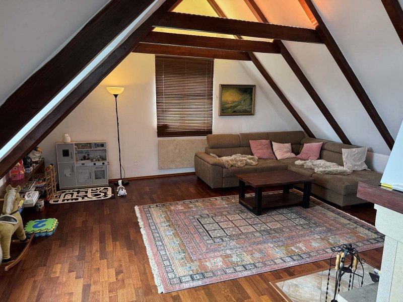 Jedním z hlavních lákadel domu je nádherný podkrovní prostor, který dodává interiéru jedinečnou atmosféru a nabízí ideální místo pro relaxaci nebo společné chvíle s blízkými.