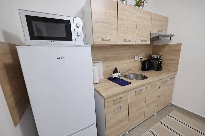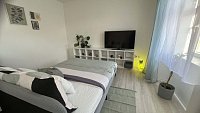 Dva apartmány spojeny zastřešenou terasou s posezením a grilem, sousedící vchody nabízí příjemné zázemí dvou rodinám s potřebou soukromí, nejen kvůli spícím dětem. Nebo pro pracovní cesty. Jeden apartmán má vchod mimo společnou terasu, s vlastním posezením. Není nutností rezervovat všechny tři apartmány. Pokud ale zájem o všechny apartmány máte, prosím nejdříve se dotažte o dostupnost.