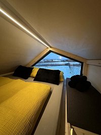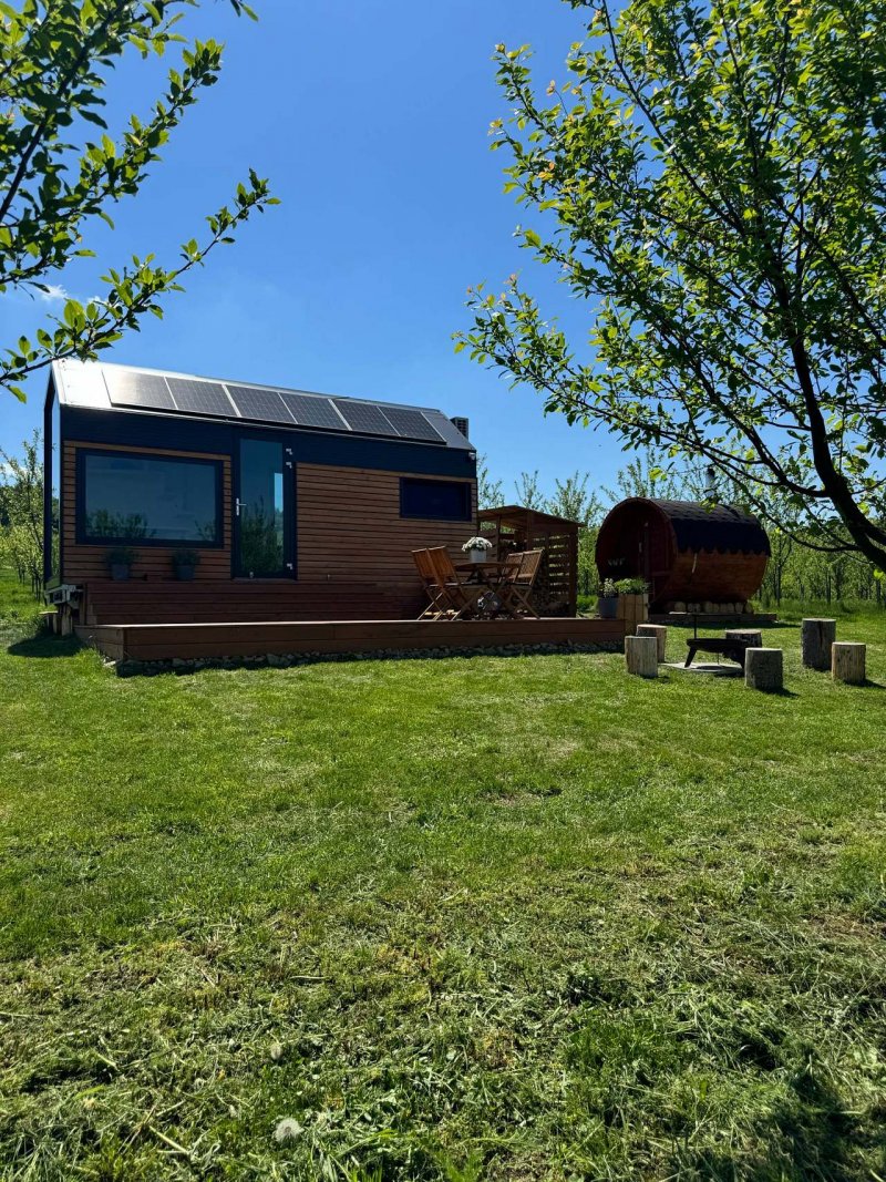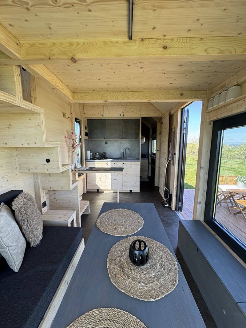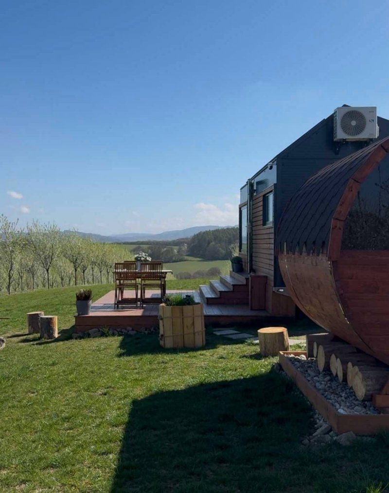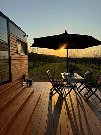 Glampidol je umístěn uprostřed trnkového sadu v oblasti, odkud pocházejí ty nejlahodnější švestky užitečné nejen na pálenku, ale též jen tak na zakousnutí pro jejich sladkou chuť. Probouzet se s výhledem na kopečky Vizovických vrchů uprostřed trnkového sadu za zpěvu ptáčků je dokonalou terapií na vyčištění hlavy od městského života. Noblesní ubytování skýtá veškeré koupelnové vybavení včetně ručníků pro váš pohodlný pobyt v přírodě. Nezávislost našeho tiny housu zajišťuje solární systém a plynové vytápění, takže komfortně strávíte také zimní čas. Horký letní vzduch v prostorách domečku ochladí klimatizace. Pohovku umístěnou u obrovského okna situovaného na východ s výhledem na Vizovické vrchy a velkého okna na sever s výhledem na trnkový sad využijete na klidné chvíle a zakusování něčeho dobrého. Po schodech se dostanete do loftové ložnice s matrací o rozměru 160 x 200 cm. Kuchyňský kout je vybaven lednicí s mrazákem, plynovým vařičem, kávovarem a designovým nádobím. Během grilování v podvečer osvítí západní sluníčko terasu před naším domečkem, kdy uplatní své gastronomické dovednosti nejeden gurmán. Romantiku ubytování ve dvou snadno navodí též opékání špekáčků.