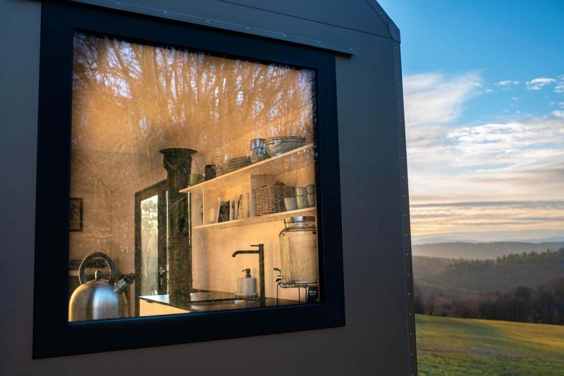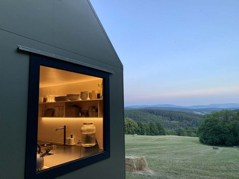 Malý, moderní domek na kolech, zasazený do ticha Bílých Karpat. Glamping Luhačovice - Hutka byla navržena s důrazem na jednoduchost, pohodlí a souznění s krajinou. Zvenku nenápadná – čisté linie, klidné barvy, velká okna. Uvnitř promyšlený interiér, který je praktický, útulný a příjemně propojený s okolní přírodou. Stojí na samotě u lesa. Z jedné strany zelené stromy, z druhé otevřený výhled do krajiny, který je největším pokladem celého pobytu. Nikde žádný hluk, žádní sousedé – jen klid, ticho a prostor pro sebe. Do Luhačovic je to jen pár minut autem, ale většina hostů z místa téměř neodchází. Terasa, hvězdy nad hlavou a výhled, který se neokouká – to často stačí ke štěstí.