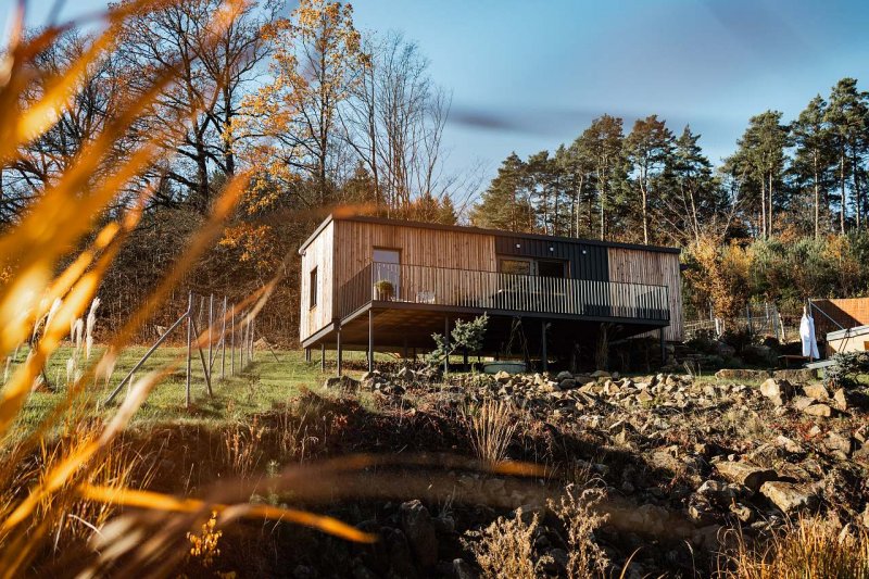 Na Podlípí je elegantní glampingová chata zasazená do valašských kopců, která spojuje přírodní klid s komfortem. Nachází se na okraji lesa v trnovém sadě nad rybníkem a nabízí soukromí a harmonii s okolní krajinou. Interiér je navržen pro pohodlný pobyt – uvnitř najdete moderní vybavení, velké okna s výhledem do okolí a dostatek místa pro relaxaci. Chata je ideální pro páry, které hledají romantiku, ale pohodlně zde přespí i menší rodiny díky plnohodnotnému rozkládacímu lůžku.
