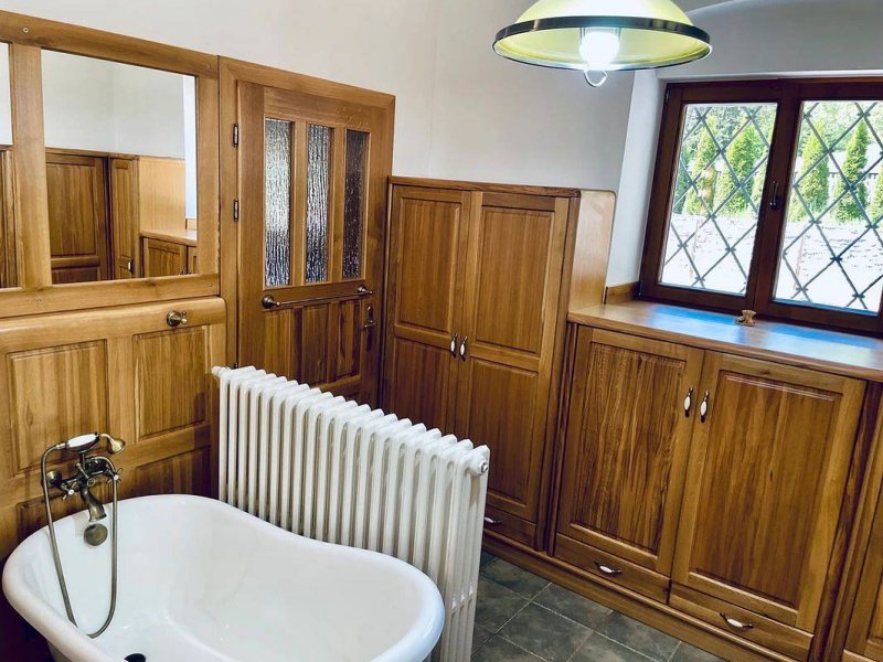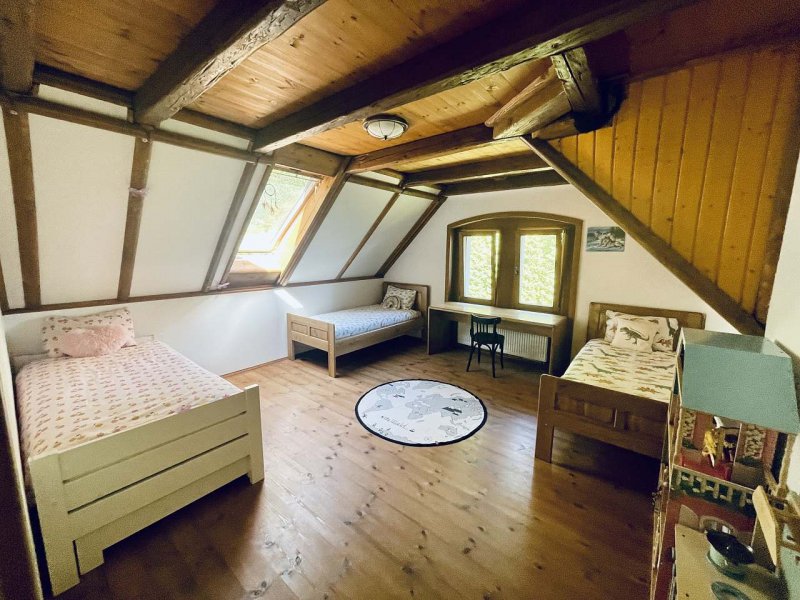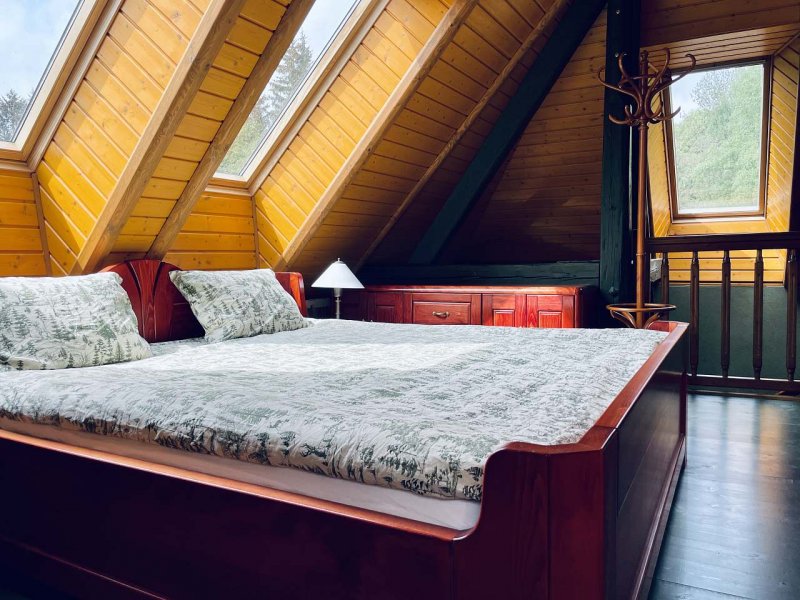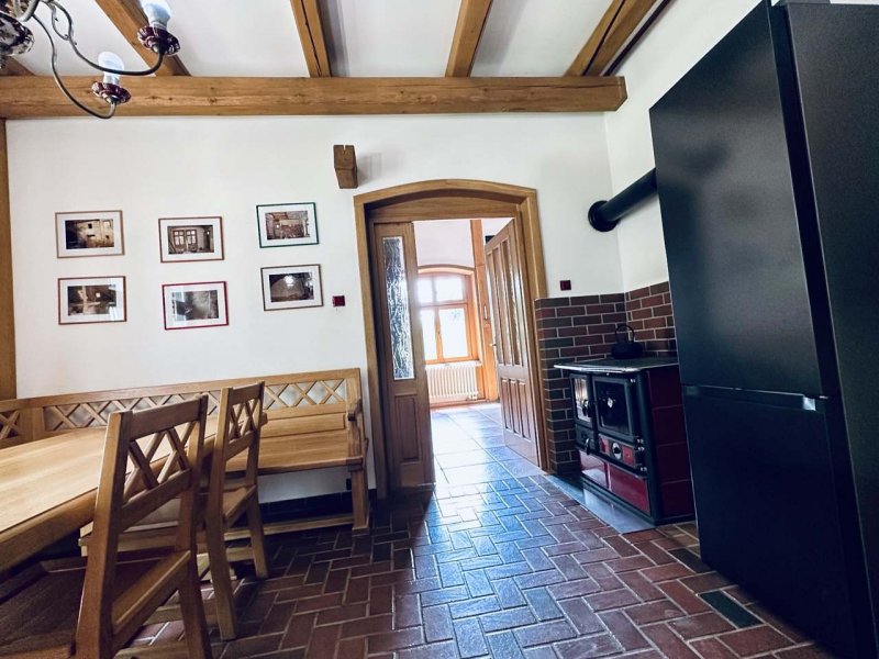 Hájovna Oliver se nachází uprostřed lesa v Krušných horách, pár kilometrů od Chomutova. Hájovna leží opravdu na samotě. Nejbližší dům je vzdálený 1.7km daleko, takže vašimi jedinými sousedy budou srnky, mufloni, divočáci, sovy, kuny, lišky a mývalové. Dům není připojen na jakékoliv sítě a i přesto nabízí pohodlí městského domu. Elektřina se čerpá z baterií dobíjených FV panely, vodu čerpáme a filtrujeme přímo z Krušných hor, o topení se stará peletový kotel a vysokorychlostní internet zařizuje Starlink. Kuchyně je vybavena velkou lednicí s mrazákem, plynovými kamny, mikrovlnou troubou a myčkou. Ve sklepě je pračka a sušička. V obývacím pokoji je televize.