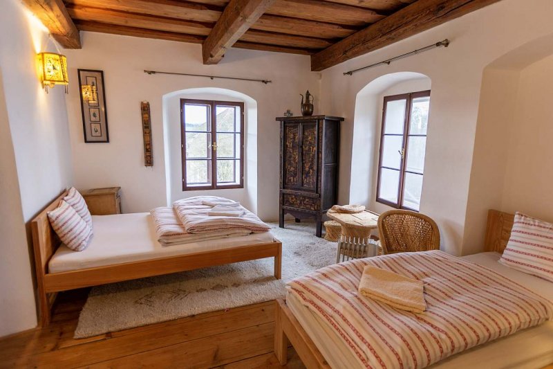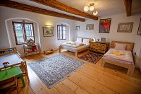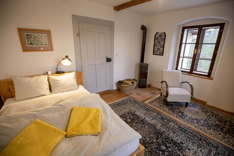 Bývalá fara postavená na základech tvrze, kterou v roce 1431 zničili křižáci. Dnes je z ní památkově chráněná venkovská vila s krásnými dřevěnými stropy a podlahami, kachlovými kamny, na kterých se dá spát, a stylovým vybavením a výzdobou. Na vilu navazuje veliká zahrada, dále už jen louky a les. Venkovní posezení pod slunečníky, trampolína, pingpongový stůl a pískoviště činí objekt ideální pro rodiny s dětmi.