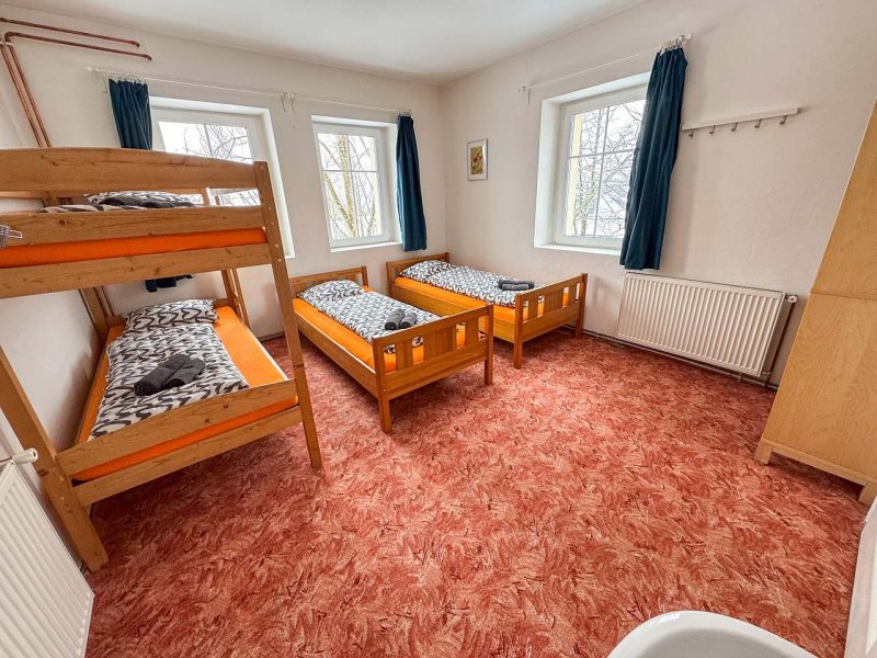 Rádi vás přivítáme na naší rodinné chalupě v Abertamech v Krušných horách, kousek od Božího daru, Plešivce a Klínovce. Najdete ji přímo ve vesnici, je snadno dostupná a má až 4 parkovací místa přímo na pozemku. Autem jste u nás z Prahy zhruba za 2 hodiny, z Karlových varů za necelou půlhodinu nebo z Plzně za hodinku a půl. Má dobré umístění v zimně i v létě. Na skiareál Plešivec vidíte přímo z okna, je zhruba 3 kilometry, na Klínovecký skiareál dojedete zhruba za 10 minut a dalších menších areálů, skvělých třeba na učení dětí nebo noční lyžování je v okolí ještě několik. Krušnohorské běžkařské stopy jsou kvalitně upravované a na jednu z nich dojdete za pět minut přímo od baráku, na Krušnohorskou magistrálu je to pak zhruba 1 km. Chata je v nadmořské výšce 890 metrů, takže na kolo můžete vyjet rovnou po vrcholkách Krušných hor nebo na sjezdy do některého z okolních trail parků. Okolní příroda, bývalé doly, naučné stezky a turistické trasy jsou krásné i na pěší výlety.