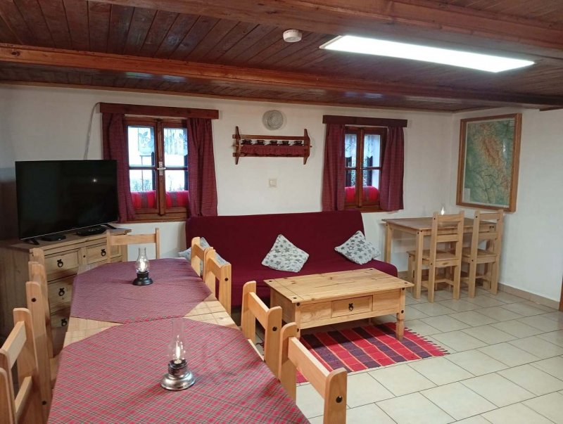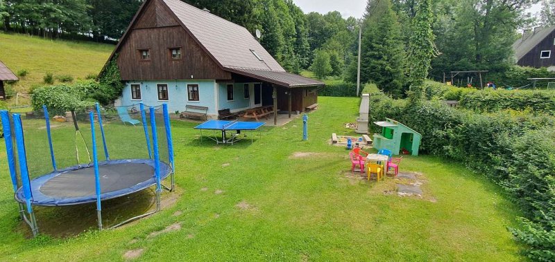 Nabízíme pronájem horské chalupy, 16 lůžek (čtyři pokoje: v patře - 2x pětilůžkový + 1x čtyřlůžkový, v přízemí - 1x dvoulůžkový s 1x přistýlkou), ke spaní je také možno využít rozkládací gauč ve společenské místnosti. Velká plně vybavená kuchyň (sporák se sklokeramickou deskou, mikrovlnná trouba, myčka nádobí, rychlovarná konvice, 2 x lednička, toustovač), 2 x WC, 2 x sprchový kout, automatická pračka se sušičkou, velká společenská místnost s LCD - TV, SAT, DVD, CD, Wifi - Free, rádio. Ve společenské místnosti krbová kamna s výměníkem, kterým se vytápí celá chalupa. Do chalupy se vchází přes verandu, v přízemí je i sklad lyžárna s velkou lednicí, chalupě patří samostatný travnatý pozemek. Venkovní zahradní posezení se slunečníky a se zahradním krbem s udírnou, zahradní bazén, houpačky, volejbalové hřiště, dětský zahradní domek, pískoviště, ruské kuželky a zahradní trampolína. K zapůjčení jsou míče, pálky, terč na elektrické šipky. Vedle chalupy na samostatném pozemku se nachází další velké travnaté hřiště s prolézačkami, houpačkami, skluzavkou, pískovištěm, brankami na fotbal, velkou trampolínou. Parkování u chalupy. V létě k dispozici kolárna, v zimě lyžárna. Za chalupou výběh s ovečkami.