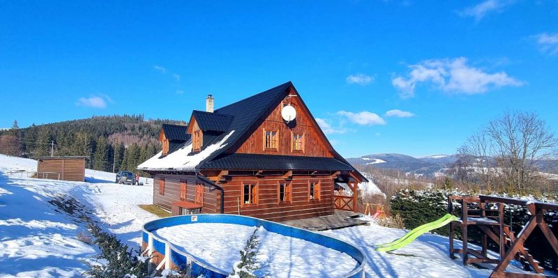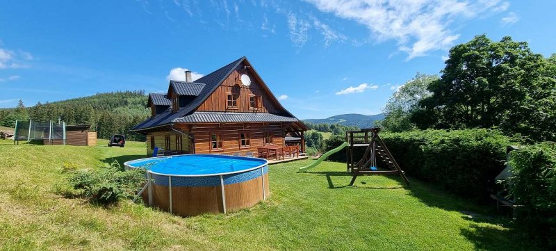 Horská roubenka je umístěna na velice pěkném a klidném místě nad obcí Stříbrnice, přímo na úpatí Kralického Sněžníku v blízkosti nejmodernější šestisedačkové lanovky v ČR Ski areálu Kraličák. Venku najdeme velkou zastřešenou terasu a letni terasu s posezením a lehátky na opalování. Od začátku června do konce srpna je k dispozici venkovní velký 8 x 4 m a 1,2 m hluboký vyhřívaný bazén., dětské hřiště houpačky, skluzavka, trampolína průměr 3.6 m, ohniště, gril, lehátka na opalování atd. Okolí roubenky tvoří horské louky, les a přímo pod chatou protéká horský potok. Cca 500 m od Chaty se nalézá nový ski areál Kraličák s nejmodernější šestisedačkovou lanovkou v ČR, která propojuje Stříbrnice s Hynčicemi pod Sušinou - Ski areál Kraličák - cca 10 km sjezdovek viz. www. mujkrajicak. cz