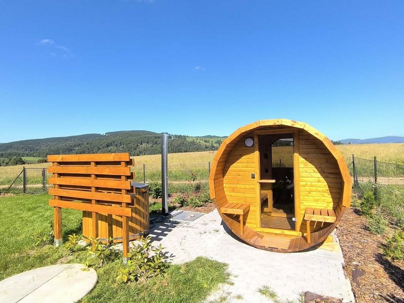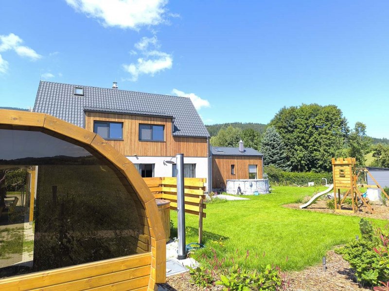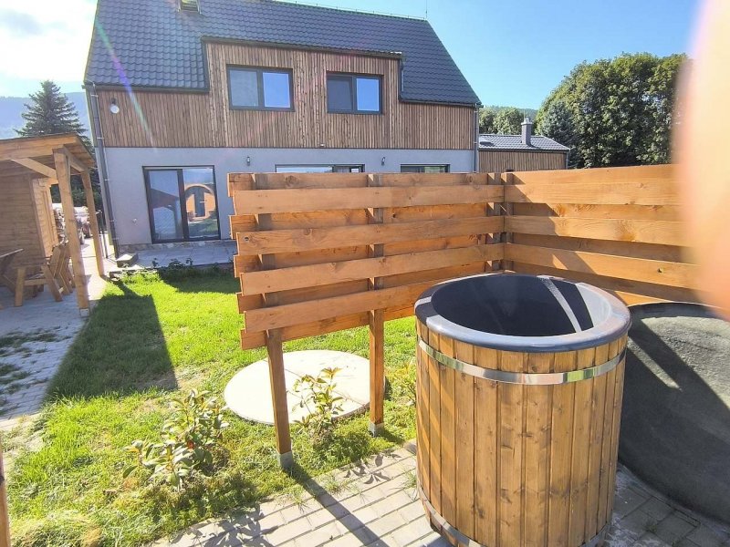 Apartmán disponuje čtyřmi ložnicemi, obývacím pokojem, 2 x WC, koupelnou a plně vybavenou kuchyňskou linkou s moderními spotřebiči včetně kávovaru na kapsle značky ILLY. Možnost uschování lyží a kol ve společném zahradním domku. V létě možnost využít oplocené zahrady. Naleznete zde prolézačky, ohniště, koupací sud a finskou saunu a nadzemní bazén.