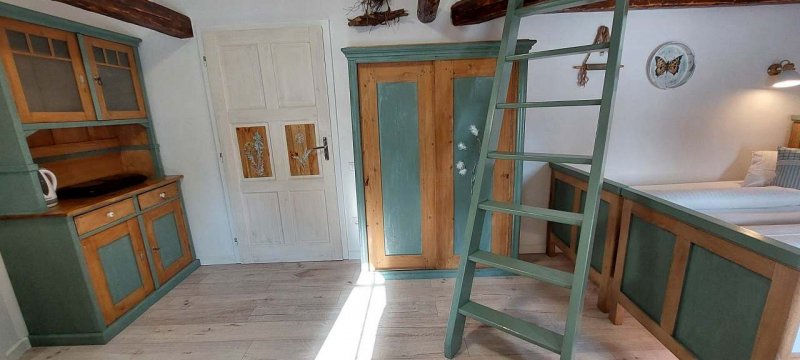 Kolem statku spousta zvířátek - koně, osel, kozy, papoušek. Možnost ubytování s vlastním koněm.