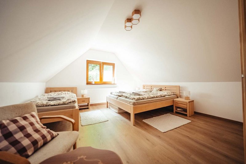 Apartmán v obci Tichá: 1 ložnice, celkem pro 1 až 5 osob. Orientační cena (za apartmán za noc): celoročně 1.500kč.