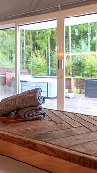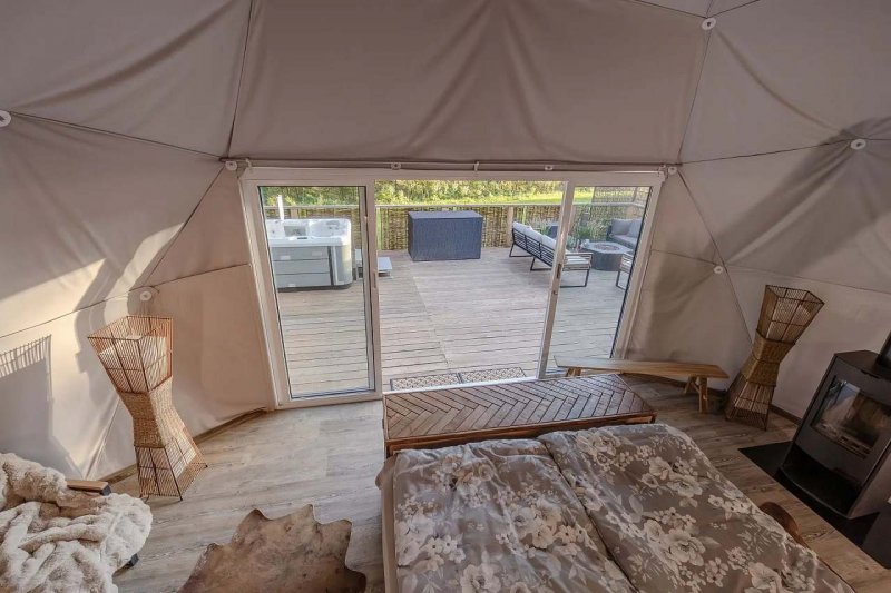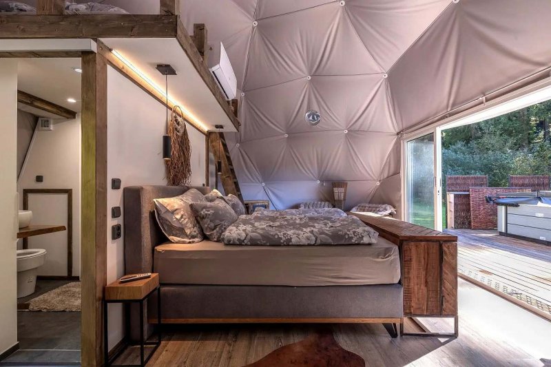 Objevte jedinečné luxusní glampingové Igloo v Pecce s venkovní vířivkou a saunou, designovou stavbu inspirovanou futuristickým světem, na jejímž návrhu se podíleli tvůrci kultovního filmu Marťan. Dominantou interiéru je velké okno, díky kterému si můžete vychutnávat nádherné výhledy do okolní přírody přímo z pohodlí postele. Igloo nabízí plnohodnotné zázemí pro komfortní pobyt – vlastní koupelnu se sprchou a WC, stejně jako prakticky vybavenou kuchyňku. Kapacita ubytování je ideální pro 2 dospělé osoby a 2 děti (event. 3 dospělé), takže si zde přijdou na své jak páry hledající romantický únik, tak rodiny toužící po netradiční dovolené. Hostům je k dispozici prostorná terasa s venkovním posezením, grilem, která dotváří dokonalou atmosféru odpočinku a zaručuje maximální pohodlí po celou dobu vašeho pobytu. Igloo je umístěno na okraji rekreačního areálu Pecka s kapacitou až 300 osob, nejedná se o samotu.