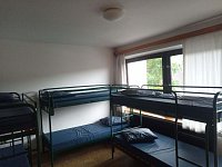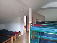 Rodinný dům v srdci Českého krasu. Dům je koncipován jako ubytovna s šesti ložnicemi vybavenými většinou palandami.