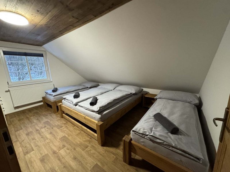 Apartmán v obci Loučná nad Desnou: 3 ložnice, celkem pro 1 až 8 osob. Orientační cena (za osobu za noc): léto 400kč, zima 490kč.