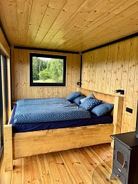 Jeseníky Glamp – minimalistický úkryt s duší přírody. U nás zapomeňte na hotely, ruch a přepych. Objevte kouzlo jednoduchého života v našem novém Tiny Housu v srdci Jeseníků, kde vám bude blíž příroda než televize a kde si ranní kávu vychutnáte s výhledem na louku a hory. Domeček je zcela samostatný a částečně soběstačný – elektřinu zajišťují solární panely, voda je ze zásobníku a ohřívá se přirozeně od slunce nebo tepla kamen. Věříme, že opravdový luxus dnes spočívá v klidu, prostoru a respektu k přírodě. Uvnitř najdete útulné vybavení, kamna na dřevo, pohodlné spaní i plně vybavenou kuchyňku. K dispozici je ekologická toaleta a venku ohniště s litinovou pánví, které přímo vybízí k večernímu grilování pod hvězdami.