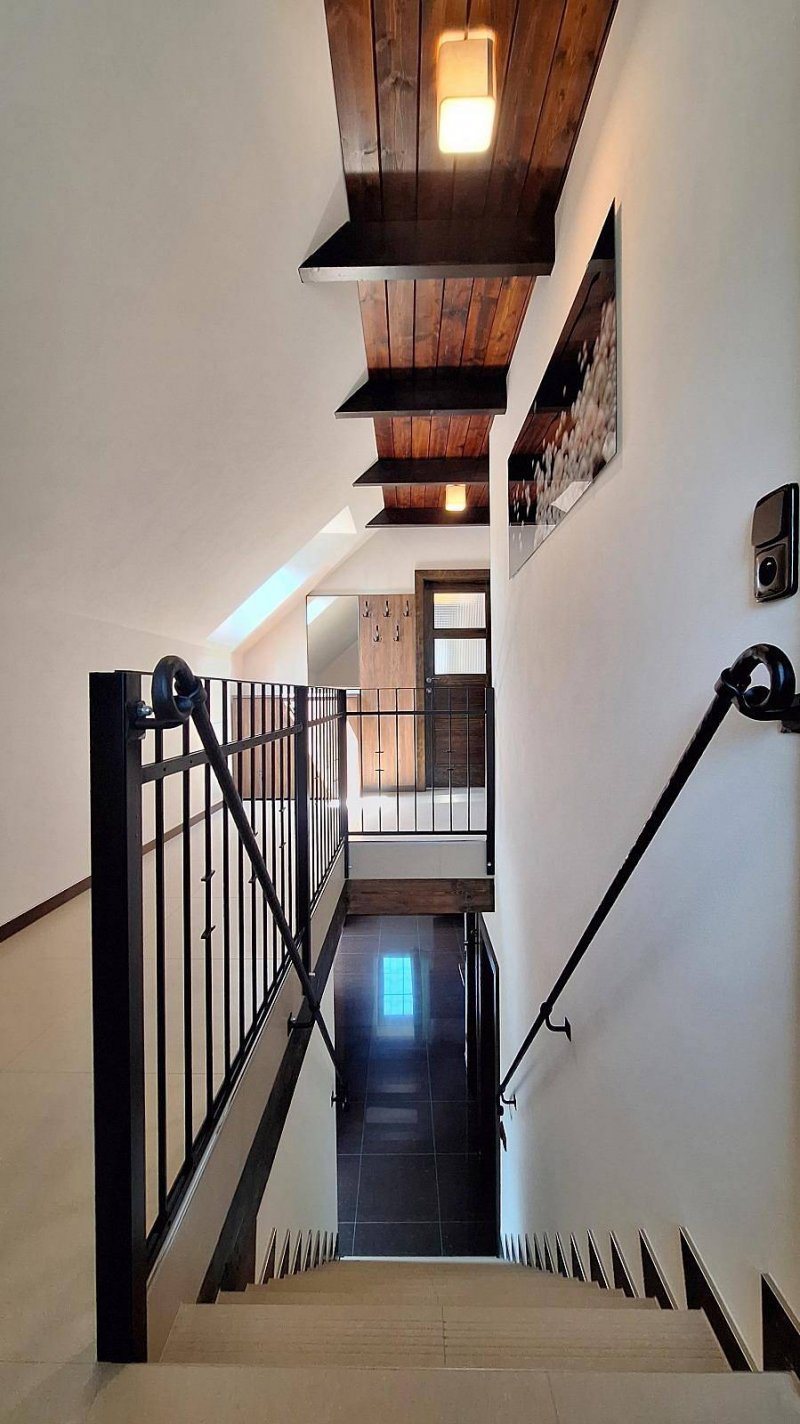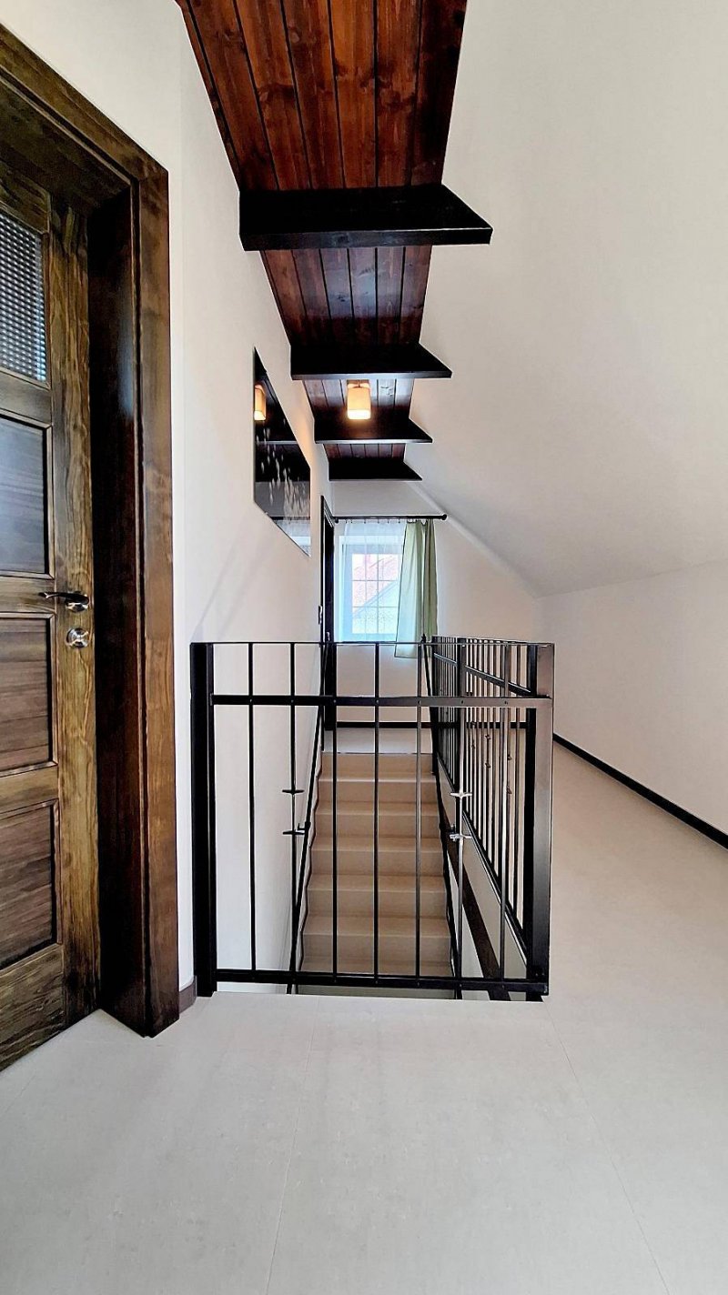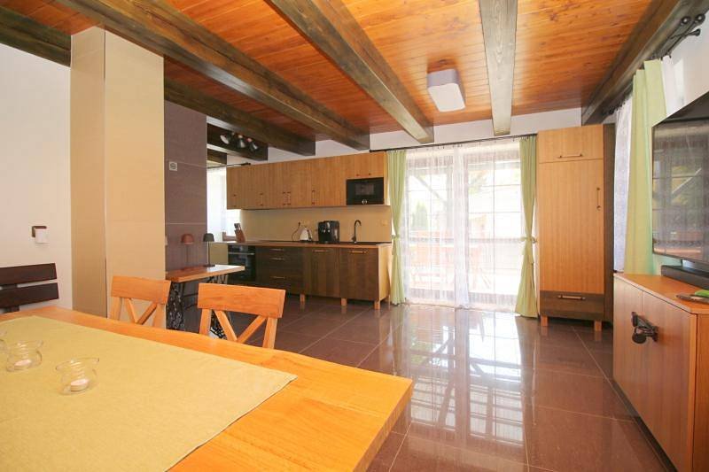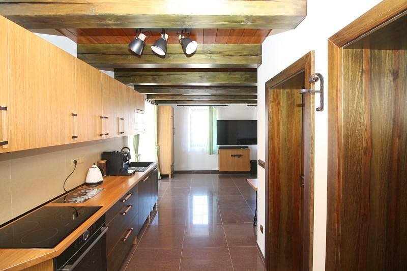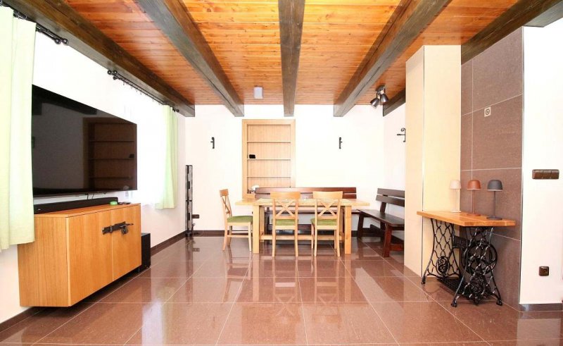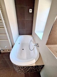 Domeček má 3 ložnice pro celkem 8 osob a postýlku pro malé dítě. Každá má vlastní TV se soundbarem pro příjemný poslech klipů či hudby. Obývací pokoj má navíc TV o uhlopříčce 165cm s kvalitním audio. Dvě luxusní koupelny v hotelovém stylu Vás plně uspokojí, spodní je s obří vanou, kde můžete v klidu relaxovat sami nebo se svým miláčkem. Velice dbáme na čistotu a upravenost, aby se hosté cítili komfortně.