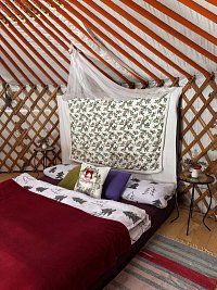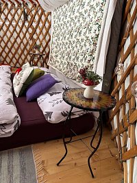 Celoročně obyvatelná jurta se nachází ve Středočeském kraji mezi Benešovem a Vlašimí. Nabízí příjemnou atmosféru typické, nádherně malované, kruhové stavby o průměru 6m. Jurta je izolovaná pláty ovčí plsti. Přijeďte si užít nádhernou energii neobvyklého obydlí. K úplné relaxaci a uvolnění můžete využít i soukromé finské sauny, kterou si vytápíte dřevem. )Příplatek 1000,- Kč neomezený čas v sauně. Osvěžující zchlazení vám poskytne 750 litrů vody v ochlazovacím sudu, po kterém se vám bude koupelí v koupacím sudu, pod kterým si také topíte dřevem, příjemně odpočívat. (Příplatek za koupací sud 1500,- Kč - neomezený čas) Jurta je vhodná především pro lidi, kteří si chtějí vyzkoušet spojení s přírodou, zklidnit duši a zharmonizovat své tělo. Odpočinout si od médií a sociálních sítí. Místo nabízí spoustu výletních možností do okolí. Vede zde mnoho zajímavých turistických, cyklistických i vodáckých tras. Pitná voda je z veřejného vodovodu. K dispozici ohniště, na kterém se, pod hvězdami, dají nejen upéct buřty, ale také se dá využít trojnožka s kotlíkem na guláš, ke grilování rošt a lávový kámen.