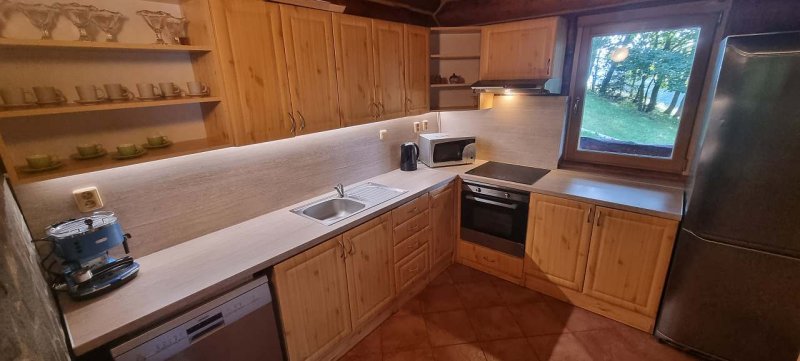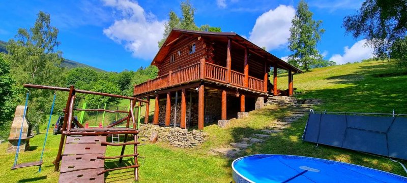 Horský kanadský srub se nachází na velice pěkném a klidném místě s nádhernými výhledy na okolní hory. Ubytovací kapacita činí 12 lůžek ( 3 x pokoj po 4 lůžkách), 2 x koupelna s WC a sprchovým koutem, vybavená kuchyňská linka s indukční varnou deskou, elektrická trouba s grilem, mikrovlnná trouba, velká lednice s mražákem, rychlovarná konvice, myčka nádobí, presovač na mletou kávu. Velká společenská místnost s rohovým posezením pro 12 osob, sedací souprava, LCD BTV, SAT, krb, technická místnost, lyžárna. Na kryté terase je k dispozici celoročně velká vířivá vana pro 6 osob, venkovní posezení na kryté i nekryté terase, venk. vyhřívaný bazén průměr 3.6m v provozu od začátku června do konce srpna, ohniště s posezením a grilem, terasa u bazénu, dětské hřiště, velká venkovní trampolína pr. 4m.,