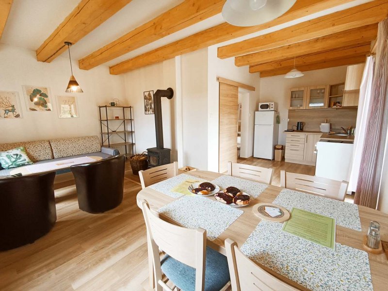 Chalupa v obci Lásenice: 3 ložnice, celkem pro 2 až 14 osob. Orientační cena (za apartmán za týden): celoročně 16.000kč.