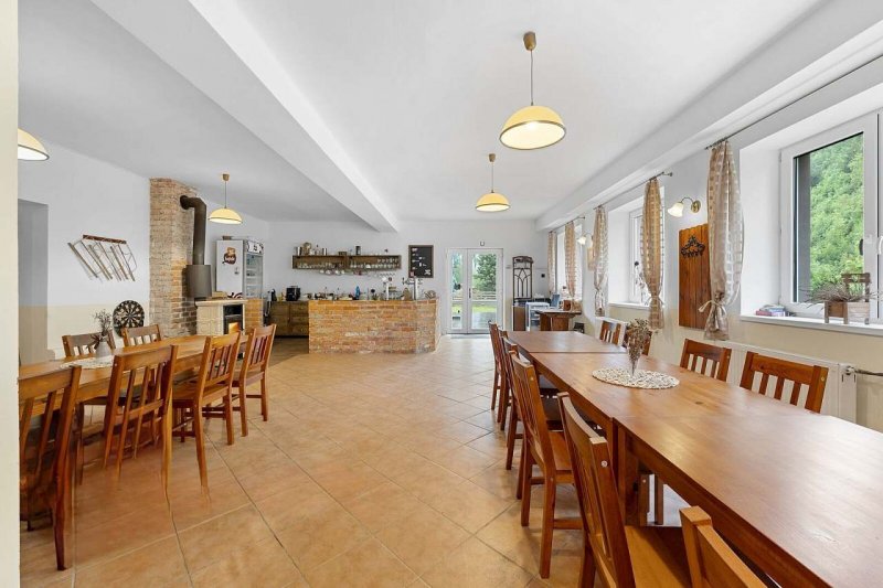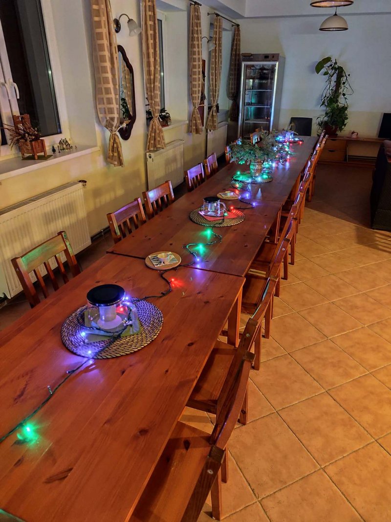 Ve spodní části objektu se nachází společenská místnost. Součástí společenské místnosti je také krb. V zadní části společenské místnosti se nachází dětská hernička.
