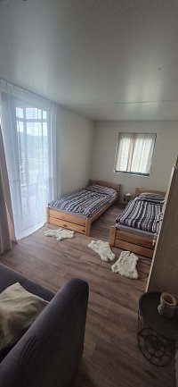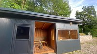 Kontajnerová chata so saunou a vírivkou v Pšurnoviciach, zvnútra príjemne zariadená, s plne funkčnou kuchyňou, kúpeľkou, nádherným výhľadom z obývacieho priestoru, dvoma priestrannými terasami. Terasa na poschodí vybavená dvoma závesnými hojdačkami, chránená pred dažďom. Dolná terasa s vonkajším posedením a ohniskom na grilovanie. Vo vedľajšej budove fínska sauna, a ochladzovanie priamo zo studne. V prípade záujmu je možné na celú dĺžku pobytu poskytnúť i kúpanie v jacuzzi.