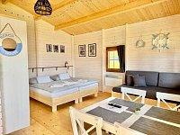 Chatka v obci Nový Malín: 1 ložnice, celkem pro 2 až 4 osoby. Orientační cena (za osobu za noc): léto 350kč.