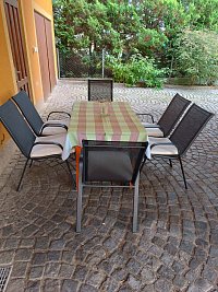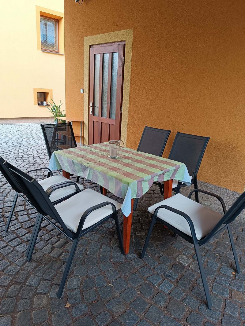 Zděný samostatně stojící dům, s vlastním vchodem vedle domu majitelů. Nachází se na oploceném pozemku se zahradou, dětským hřištěm, skluzavkou, houpací sítí a kruhem. V ceně ubytování je celoroční využití vířivé vany, až pro 5 osob, která se nachází v prosklené pergole, pro zachování soukromí je umístěn paraván. Na venkovní terase je umístěná chladící káď, ideální po koupeli ve vířivé vaně (nebo jen tak). Rovněž je možnost zdarma užívat zastřešený bazén, s možností zapnutí protiproudu. Bazén je v provozu od konce května do konce září. K dispozici také ping pongový stůl s příslušenstvím.
