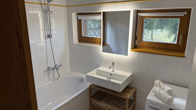 Ubytování v dřevěné chatě, s dvěma ložnicemi, kuchyní s myčkou, troubou a varnou deskou, lednicí, mrazákem, mikrovlnkou a kávovarem. Koupelnou s vanou, sprchou pračkou a umyvadlem a vyhřívanou podlahou. Toaleta s bidetem. Obývací pokoj s krbem. Chata se zahradním grilem, terasou, zahradou a přímým vstupem do lesa a wifi internetem. Parkování před objektem. Kapacita 6 osob. Úklid, roomservice dle přání. hospoda 700m, les 20m, pískovny 900m, řeka Lužnice 900m, řeka Nežárka 1800m. Délka pobytu minimálně 1 týden, příjezd v neděli a odjezd v neděli.