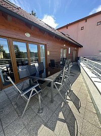 Apartmán je umístěn v centru obce a v blízkosti lyžařských sjezdovek a jezera Lipna. Mezonetový apartmán je vybaven dětským koutkem s hračkami, k dispozici je bezplatná Wi - Fi, stolní hry, TV s programem NETFLIX, privátní sauna a v letních měsících venkovní bazén. V tomto ubytování je dostatek místa na zábavu všeho druhu pro celou rodinu. V zimní sezóně je lanová dráha v těsné blízkosti. Tento apartmán nabízí neplacené soukromé parkoviště a v okolí se můžete věnovat lyžování, cyklistice, stolnímu tenisu a dalším aktivitám. V okolí apartmánu je půjčovna kol a lyží dle sezóny.
