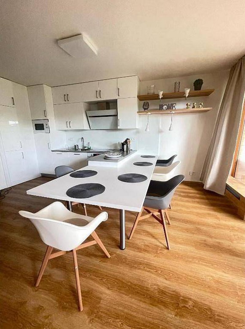 Nabízíme k pronájmu moderní apartmán Lipno Port C101 3+kk o ploše 100m² s luxusním interiérem, soukromou saunou, garáží a terasou. Nachází se v Lipně nad Vltavou v přízemí nově postavené vícepodlažní rezidence – Lipno Port. Přímo u Lipenského jezera, v klidné lokalitě, obklopen borovým hájem.