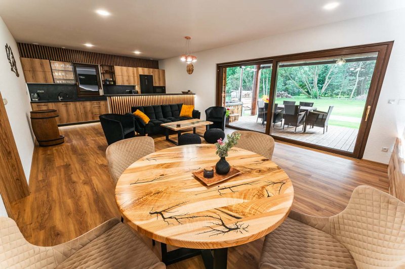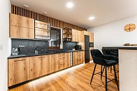 Celkem 4 nové (dostavěno 06/2024) luxusně vybavené apartmány každý o velikosti cca 115m2 v centru turistické obce Ostravice pod Lysou Horou. Celková kapacita 24 osob (4+2 na apartmán). Horní apartmány mají vnitřní vířivou vanu v koupelně pro 2 osoby, zimní zahradu obloženou opalovaným dřevem, obývací pokoj s plně vybavenou kuchyní včetně americké lednice s výrobníkem ledu, dále 2 ložnice a druhé samostatné WC. Spodní apartmány mají 2 ložnice, obývací pokoj s kuchyní, koupelnu, venkovní terasu, ze které je přímý přístup do vlastní (jen pro Váš apartmán) vířivky pro 6 osob vždy s nově napuštěnou vodou. Venku je k dispozicivenkovní sauna pro 6 osob, 3x gril, fotbalové hřiště pro děti, houpačky, les, ohniště, různé venkovní hry a 6x horská kola zdarma k zapůjčení. Před domem je celkem 6 parkovacích míst, z toho 4 kryté a 2 wallboxy pro nabíjení elektroaut. Kvalitní zázemí, perfektní čistota, špičkové vybavení včetně vířivek a udržované travnaté plochy vám umožní nezapomenutelnou rekreaci. Objekt se nachází kousek od golfového hřiště, kde je v zimě udržován areál pro běžky. Na lyže se dá vyrazit na Bílou, Opálenou - Čeladná, Skipark Grůň nebo Malenovice. V okolí spousta cyklotras a zdarma Vám zapůjčíme horská kola, případně 300m od ubytování je půjčovna kol a lyží. Na Lysou Horu, která je vzdálená cca 7,5 km, lze vyrazit přímo z apartmánů pěšky. K dispozici kvalitní moravská vína a vybrané druhy alkoholu ve vinotéce.