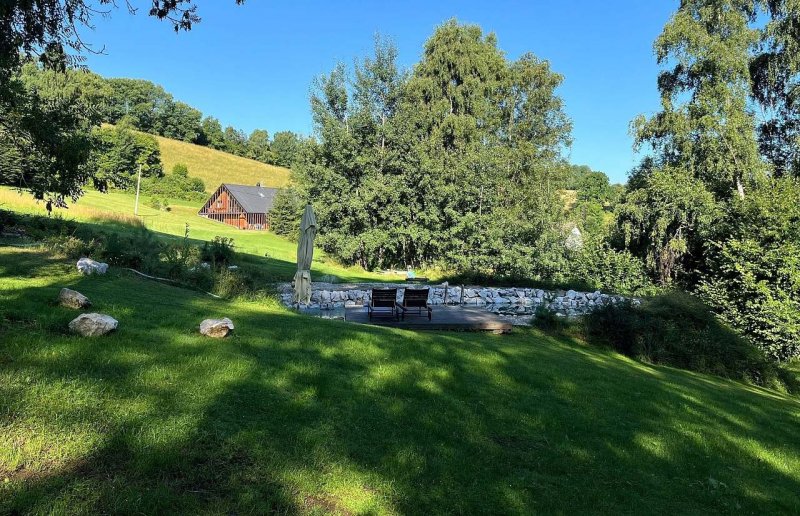 Luxusní chalupy na Šumavě s vlastním koupacím jezírkem - 2 chalupy na úplné samotě nad řekou Otavou, které poskytují veškerý komfort pro krásnou dovolenou. Jedinečná nabídka v oblasti Šumavy s úplným klidem a výhledem do zeleně, les 100m. Chalupy byly zvoleny mezi 20 nejlepších domů roku 2012!