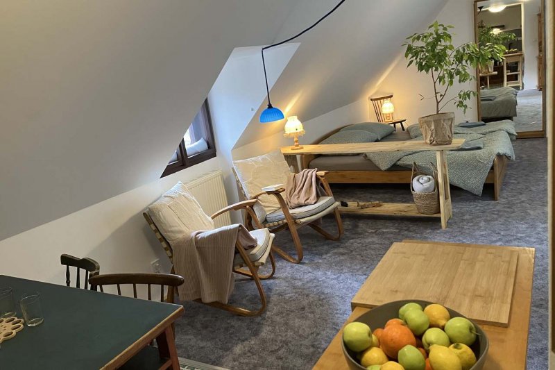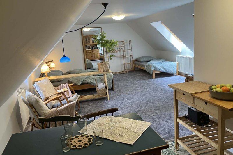 U nás nabízíme ubytování v apartmánu, který je v půdním prostoru našeho domu.