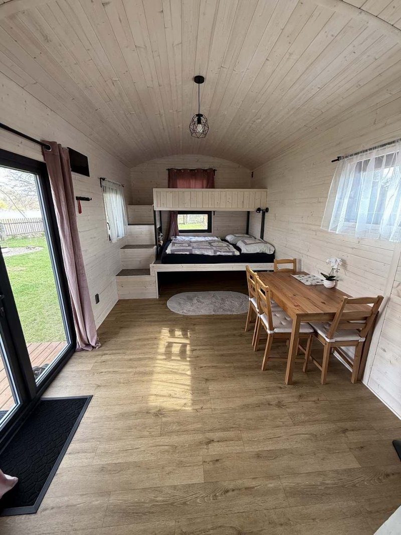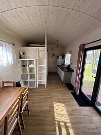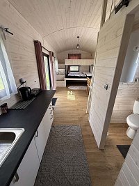 V maringotce najdete plně vybavenou kuchyňku. Toaleta s koupelnou jsou samozřejmostí. V chladných dnech lze přitopit přímotopy. Venku lze posedět u ohniště s grilem.
