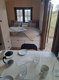 Zažijte netradiční ubytování v plně vybavené maringotce. Na konci vesnice, v bezprostřední blízkosti lesa uniknete z reality všedního dne. K dispozici je pro vás pohodlná prostorná postel, kuchyňský kout s nádobím, koupelna se sprchovým koutem a splachovací toaletou. Jsme připojeni na inženýrské sítě. Ručníky a ložní prádlo jsou samozřejmostí. V maringotce topíme v kamnech. Venku je koupací sud, ohniště a posezení. Ubytování je vhodné pro dvě osoby. Luxusní ubytování v souladu s přírodou. V blízkém okolí najdete řadu turistických cílů.