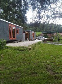 Dvě maringotky, každá pro 4 osoby a jedna samostatná pro dvě osoby.