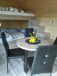 Chata v obci Radešov: 1 ložnice, celkem pro 2 až 5 osob. Orientační cena (chata za týden): léto 14.000kč.