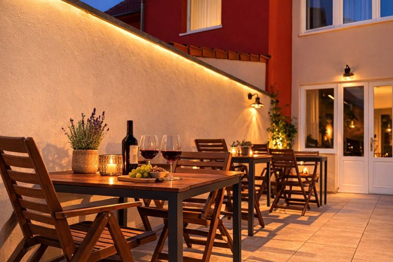 Naše ubytování je ideální pro páry, přátele i rodiny, které chtějí objevovat krásy Mikulova, ochutnávat moravská vína a užít si relax v příjemném prostředí. Hosté mohou během pobytu využít terasu s posezením, zahradu s grilem nebo si vychutnat sklenku vína v našem vinném sklípku. Pro cyklisty je k dispozici kolárna, rodiny s dětmi ocení dětský koutek a trampolínu na zahradě.