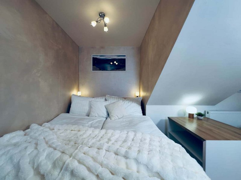 Jáchymka je moderně zařízený apartmán přímo na Náměstí Republiky v Jáchymově, v srdci Krušných hor. Nabízí pohodlné ubytování pro 2–4 osoby a je ideální pro páry, rodiny i menší skupiny, které hledají útulné zázemí v perfektní dostupnosti obchodů, restaurací, lázní i turistických tras.