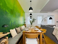 Apartmán se nachází v historickém domě, ale interiér prošel kompletní rekonstrukcí. Hosté mají k dispozici plně vybavenou kuchyň, obývací část s chytrou TV, samostatnou ložnici, moderní koupelnu se sprchou a pračkou. Samozřejmostí je rychlá Wi‑Fi, čistota a pohodlí. Vstup do apartmánu je řešen samoobslužně pomocí schránky na klíče.