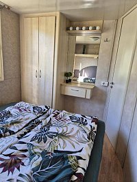 Náš mobilní dům Krajánek se nachází ve velmi oblíbeném a navštěvovaném kempu Výr v těsné blízkosti Výrovické přehrady, jen pár kilometrů od královského historického města Znojma a Národního parku Podyjí. Po příjezdové cestě se dostanete až k mobilnímu domu, u kterého si pohodlně zaparkujete automobil. Mobilní dům je moderní, čistý, voňavý, útulný a udržovaný, takže se zde budete cítit jako doma :-). V areálu kempu najdete restauraci, bar, točenou zmrzlinu, obchůdek s potravinami, společenskou místnost, 2 dětská hřiště (nad mobilním domem a cca 100m po cestě na pláž). Na písečné pláži, která je vzdálená pouhých 230m můžete využít půjčovnu sportovního vybavení včetně šlapadel. Provozovat zde můžete i řadu aktivit včetně rybaření, koupání, cyklistiky, pěší turistiky a samozřejmě navštívit spoustu krásných míst na jižní Moravě - nedaleký NP Podyjí, zříceniny, hrady, rozhledy, přehrady, vyhlídky atd. Domluvíte se zde těmito jazyky: česky, německy, anglicky, slovensky.