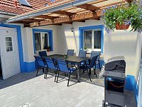 Modrá chalupa se nachází v obci Vrbice kde je krásné okolí a pro milovníky kola a vína je zde nespočet možností na výlety. Chalupa má společenskou místnost s posezením. Kuchyň je plně vybavená. V přízemí se nachází jeden dvoulůžkový pokoj s wc, který ocení hlavně starší lidé, kteří mají problém s chůzí do patra. V koupelně je k dispozici infrasauna pro 3 osoby. V podkroví je jeden dvoulůžkový pokoj, jeden šestilůžkový pokoj a jeden dětský pokoj ve kterém mají děti zázemí/hračky, TV, postel. Chalupa má uzavřený dvorek na kterém je venkovní zastřešené posezení s plynovým grilem. U chalupy je parkování pro dvě auta.